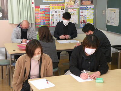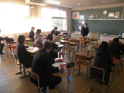 2024年2月13日 16時20分第4回の進路対策委員会が行われています。進路状況と今後の予定について確認しました。併せて、県立高校の調査書の点検を行いました。準備は全て整いました。