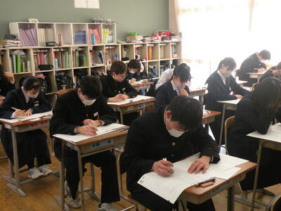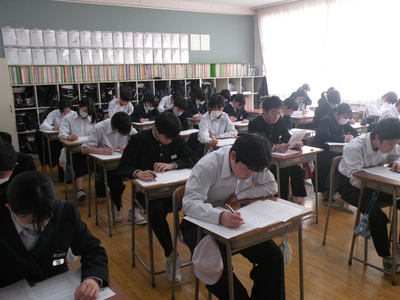 2024年2月16日 09時00分昨日より期末テストが行われています。本日は4教科です。最後まであきらめずに、粘り強く取り組んでください。もうすぐ、2,3年生へ進級ですね!