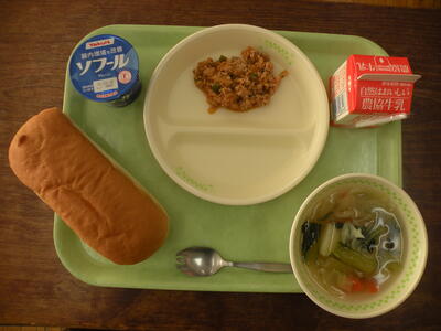 2024年2月13日 12時40分今日のメニューは、背割れコッペパン・スラッピージョー・ポテトスープ・ヨーグルト・牛乳でした。今日はメニューのみの紹介とさせていただきます。