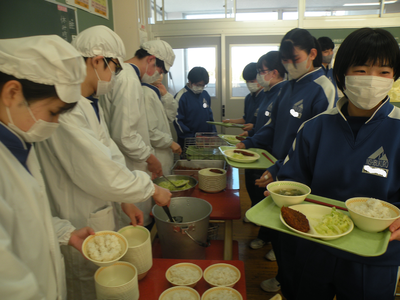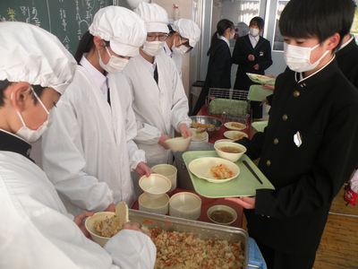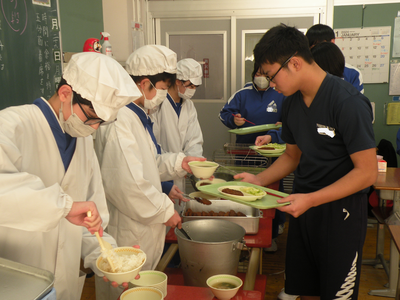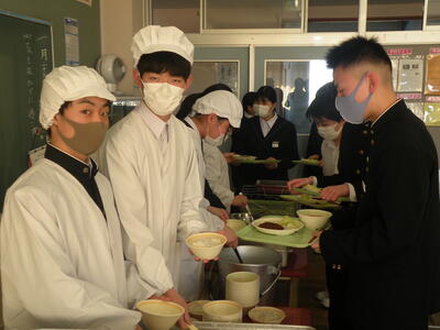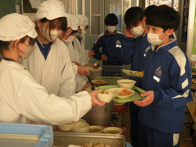 2024年1月29日 12時50分今日のメニューは、麦ごはん・ソースカツ・ボイルキャベツ・すまし汁・牛乳でした。ソースカツ、とても美味しかったです。今日は3年生の教室を訪問しました。私立高校の受験が終わり、久しぶりにみんなが揃った感じです!