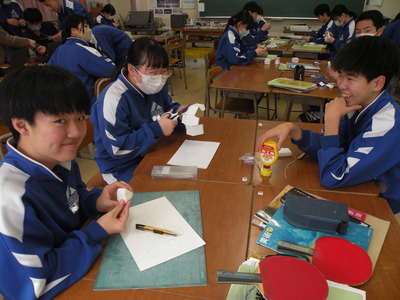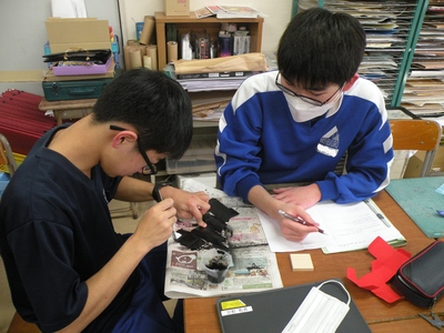 2024年1月30日 11時20分3年生の美術の時間では何かマル秘的なものを制作しています。さて、何が出来上がるのでしょうか。みんな一生懸命に制作活動を行っていました。