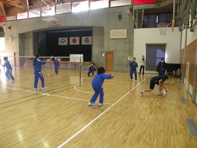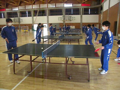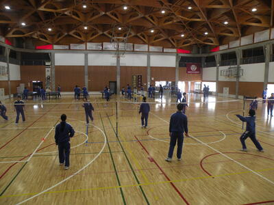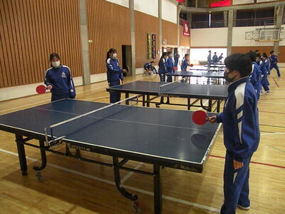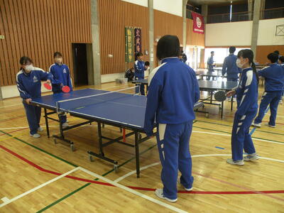 2024年1月30日 12時45分保健体育の授業ではバドミントン・卓球を行っています。生徒たちは大汗をかきながら一生懸命に身体を動かしています。けがに注意し、楽しく活動してくださいね!