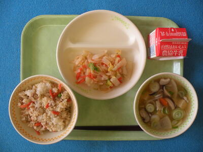 2024年1月31日 12時35分今日のメニューは、シーチキンごはん・ピリ辛漬け物・のっぺい汁・牛乳でした。1月も今日で終わりです。明日から2月、令和5年度もあと残すところ2か月となりました。今日は1年生の教室を訪問しました。