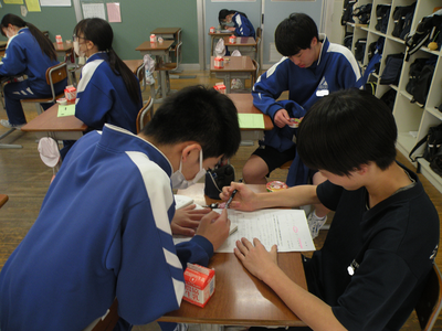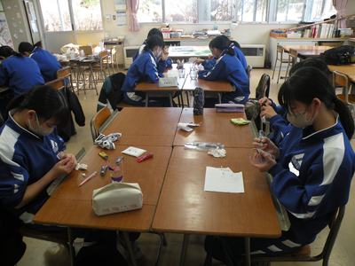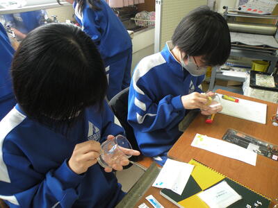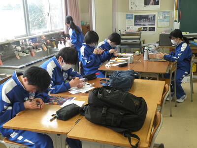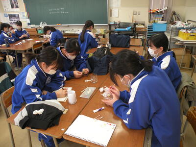 2023年12月26日 11時00分美術部は各自のグラスに模様を専用の道具で彫っていました。まるで猪苗代町にありますのガラス館のようでした。みんな一生懸命に活動していました。この後、美術部も大掃除のようです。