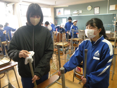 2023年12月21日 15時15分今日は本校の大掃除の日です。各学年、1年間お世話になった教室等を一生懸命に清掃することができました。ぜひ、年末は自宅や部屋の掃除も忘れずに行ってくださいね。