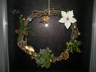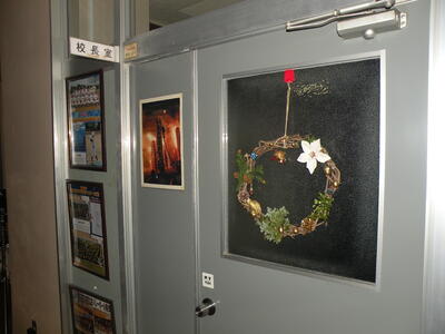 2023年12月21日 17時10分女子生徒に素敵なプレゼントをいただきました。手作りのクリスマスリースです。ありがとうございました。とても嬉しい限りです。明日まで校長室入口に飾らせていただき、その後は自宅で飾りたいと思います。本当に心優しい生徒がたくさんいる西中です!!