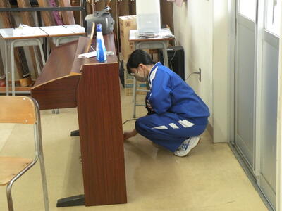 2023年12月26日 10時50分吹奏楽部、今年最後の部活動です。1年間お世話になりました練習会場である音楽室を全員できれいにしていました。毎日の練習も一生懸命ですが、清掃活動も一生懸命でした。こうしたことが好成績に繋がっているものと思います。皆さん、ありがとうございます。
