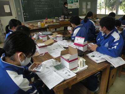 2023年12月6日 14時00分ラジオの製作に入る前の注意点について学習していました。勝負は聞こえるか・聞こえないかです。各家庭の防災にも役立ちます。活用できるものを作り上げてくださいね!