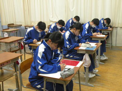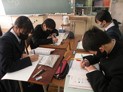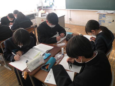 2023年12月7日 16時35分3年生の希望生徒を対象に、3週間前より放課後の数学の学習会を実施しています。みんな真剣に問題と向き合っていました。「継続は力なり」毎日の積み重ねが大事ですね。頑張りましょう!