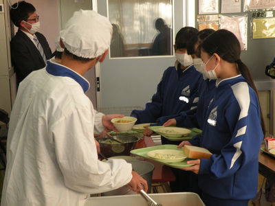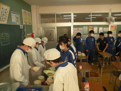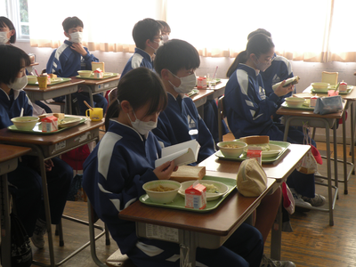 2023年12月8日 12時50分今日のメニューは、麦ごはん・豚肉のスタミナ炒め・みそ汁・牛乳でした。今日もとても美味しくいただきました。今日は3年生の教室を訪問しました。「給食もあと何回食べられるのかなあ」と思いました。明日の授業参観日は弁当持参ですので、よろしくお願いいたします。