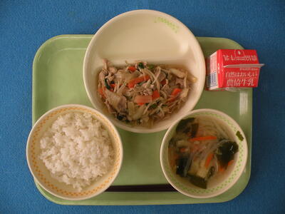 今日の給食は「豚肉のスタミナ炒め」でした!