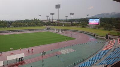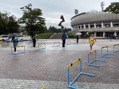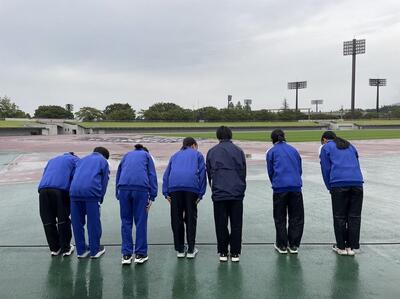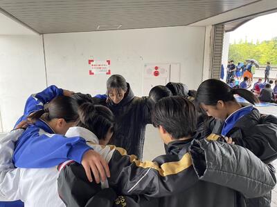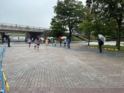 2023年10月4日 08時35分会場の福島市は生憎の雨模様です。ただ気温が低く、暑くもなく、走りやすいコンディションです。本校選手、みんな元気です。女子スタートは10時です。保護者の皆様のご声援、よろしくお願いいたします。