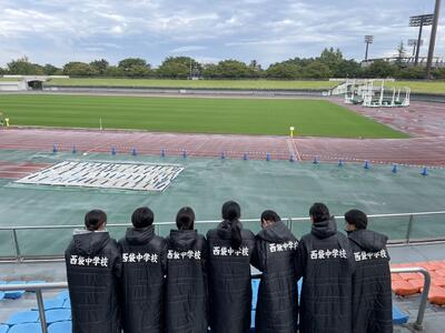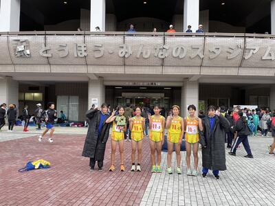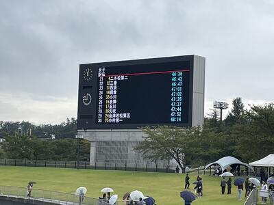 2023年10月4日 11時50分総合順位は23位でした。保護者並びにそのご家族の皆様の応援、ありがとうございました。選手5名と補助選手2名が力を合わせ、頑張りました。2年生は来年に繋がるレースでした。3年生は3年間、ご苦労様でした。みんなありがとう!