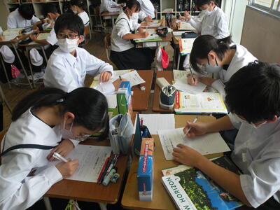 英語の授業、たいへんに盛り上がっています!(3年2組より)