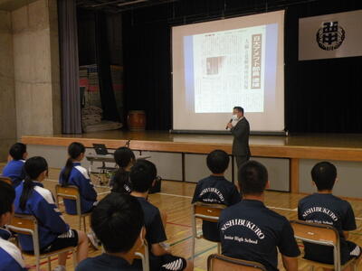 2023年10月5日 17時10分本日、2年生を対象に薬物乱用防止教室が行われました。講師に本校の学校薬剤師の先生をお迎えし行われました。生徒たちは終始、真剣な眼差しでお話を聞くことができました。ありがとうございました。