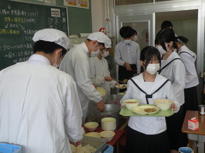 2023年10月6日 12時45分今日のメニューは、麦ごはん・チンジャオロース・五目スープ・ブルーベリージャム・牛乳でした。今日は3年生の教室を訪問しました。学習や読書に励んでいる生徒が見られました。さすが受験生ですね!