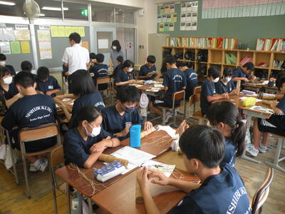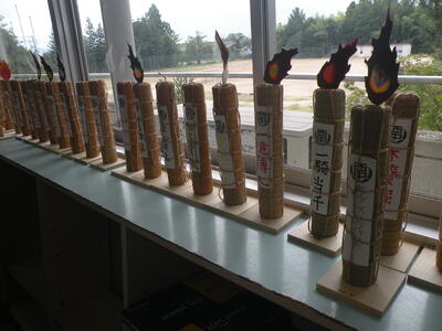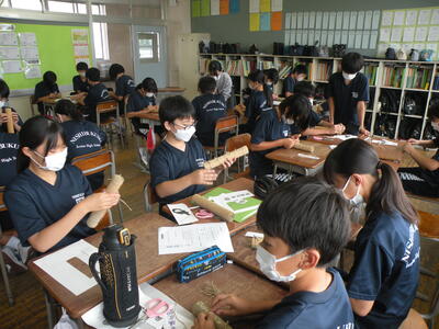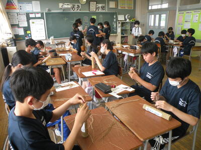 2023年9月20日 12時25分3,4校時目はミニ松明づくりを行いました。1年生も3年生になったら大松明づくりに挑戦します。今から松明あかしについて学習しておくことは大事なことです。すばらしい作品が完成しました。