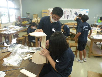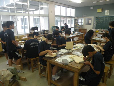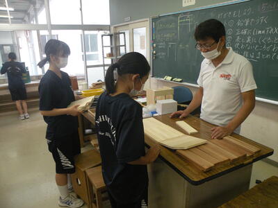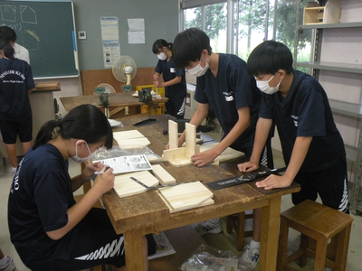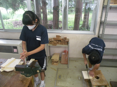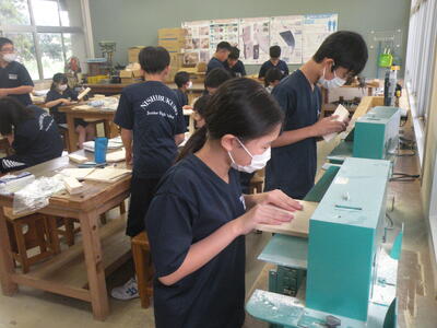 2023年9月21日 11時15分1年1組の技術の時間では木工製作・本立て作りが行われています。グループや友だちと協力し合って進めていました。最後までていねいに仕上げてくださいね。自分の部屋で使えるものを完成させましょう!