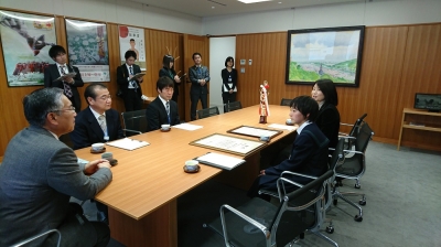 2017年12月15日 16時30分 本校3年生 佐久間 桃さんが、橋本克也市長さんを訪ね、先月12日、東京都渋谷区の