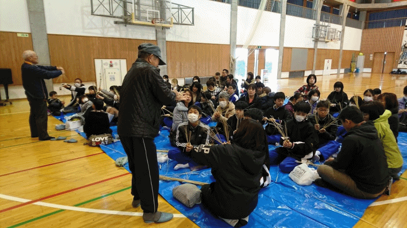 公民館の皆様には、1年生の学社連携事業歳時記体験「しめ縄つくり」の指導に加え、