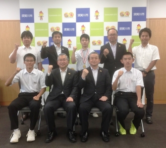 卓球大会に出場する相楽 将選手の全国中学校体育大会出場報告会が須賀川市役所で行