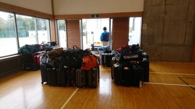 明日から始まる修学旅行に向けてキャリーバックなど大きな荷物を載せたトラ