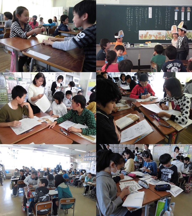 本日は埼玉大学教授 庄司 康生先生を講師にお招きし、第6回自主公開を行いました。公開授業は、1年1組の道徳「相手の気持ちを考えよう『くり』」、6年1組の国語科「筆者のものの見方をとらえ、自分の考えをまとめよう」、6年3組の算数科「速さの表し方を考えよう」でした。1年生の授業ではけんかにならない言葉を考え、その言葉を使って劇化することができました。6年1組の授業では、鳥獣戯画の3匹の蛙の絵を見て、自分なりの見方をまとめ、友達と交流しました。6年3組の授業では、それぞれ違う距離を走っている6人の友達で1番速いのは誰かを調べ、考えを交流しました。