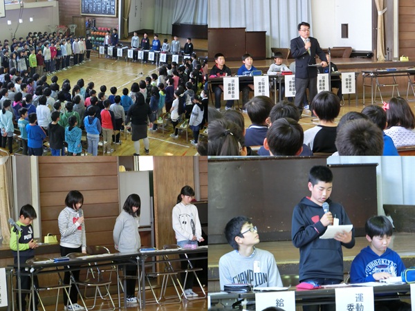 2016年4月14日 17時07分4月14日(木)の6時間目は、4年生から6年生、そして教職員が体育館に集まり、児童会総会を