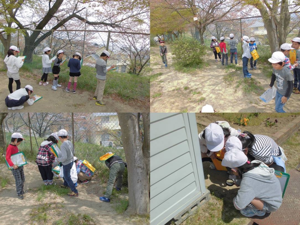 初めて虫眼鏡の使い方を勉強し、手にしたこどもたちは宝探しをするかのように校庭で春の生き物を探していました。子どもたちは、今まで見たことがない虫眼鏡で見るアリや花を熱心に観察していました。