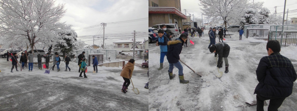 朝早くから6年生が、学校の雪かきをしてくれました。