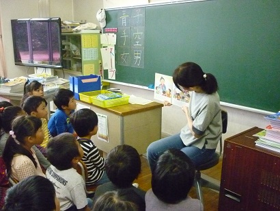 朝の読書タイムに読書ボランティアの方に、読み聞かせをして