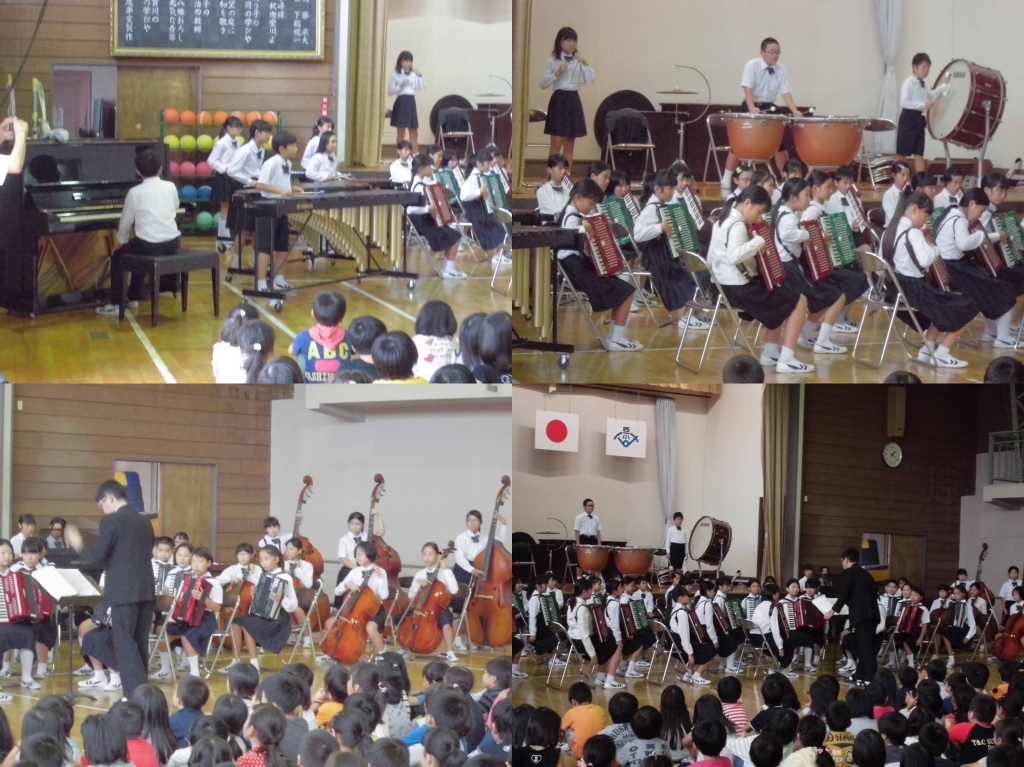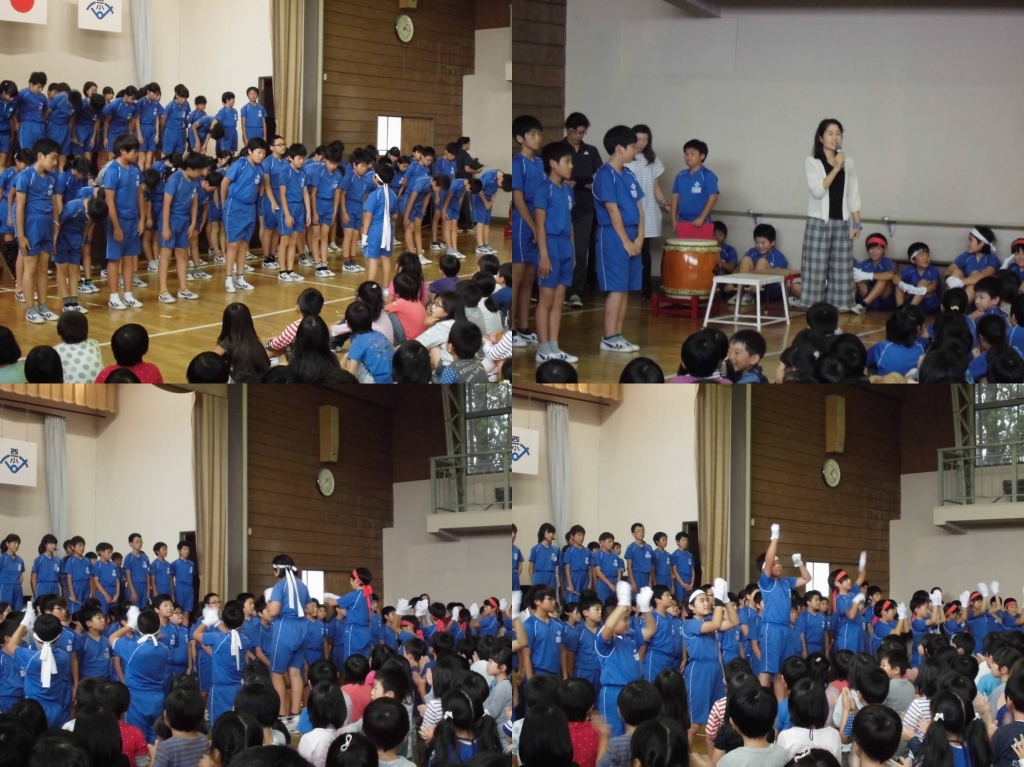 全校集会では、9月29日(木)に行なわれる地区音楽祭の壮行会がありました。