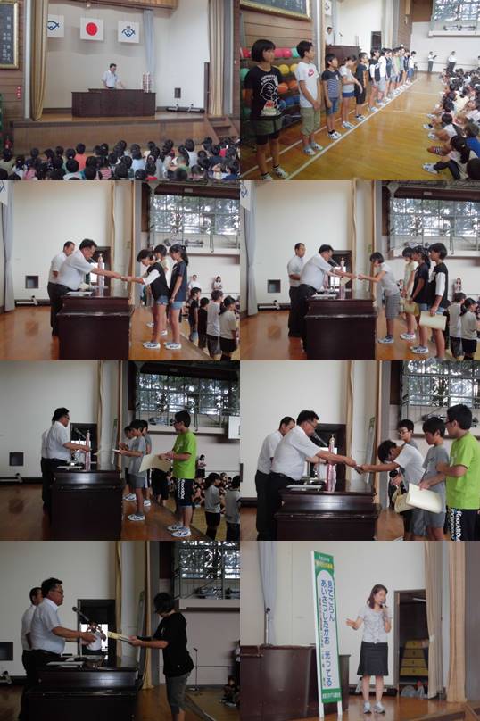 始業式後には、夏休み中の水泳交歓会の表彰式がありました。