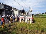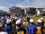 9月19日(火)稲刈りの見学に行きました。春に田植えをした稲の穂は黄金色に実り、実をぎっしりつめこんで頭を垂らしていました。稲刈りは、岩崎さんと設楽さんにお世話になり、コンバインを使って10分程であっという間に稲が刈り取られました。子ども達からは「はやーい!」と歓声があがっていました。例年より1週間も早く収穫時期となったそうです。今日収穫されたお米は約300㎏。コンバッグという袋に詰められ、ライスセンターに運ばれていきます。来週28日(木)は収穫されたお米を追ってライスセンター見学に行きます。