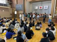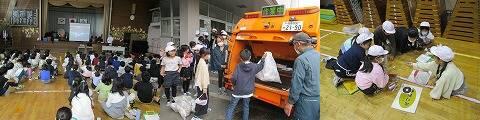 まず、体育館で市の職員の方から、現在のごみ処理の課題について話を聞きました。子ども達は、真剣に話を聞き、質問もしていました。