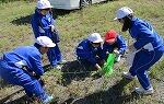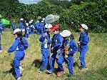 避難訓練の後は、水消火器を使っての消火訓練。