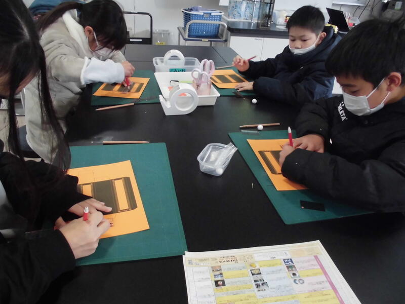 マジックボックスでは、遮光板の重ね方で、透けて見えたり、黒くなって見えなくなったりする仕組みに驚き、楽しみながら作ることができました。