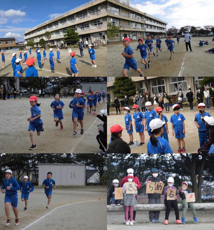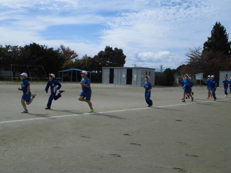 昨日の雨で校庭はまだ少しぬかるみがありましたが、子どもたちが走るところは、砂を入れて走れる状態になりました。4校時、自分の目標を掲げた子どもたちが校庭に出てきました。準備運動を始めると、太陽が顔を出し、気温も上がってきました。風はなく、絶好のコンディションでした。