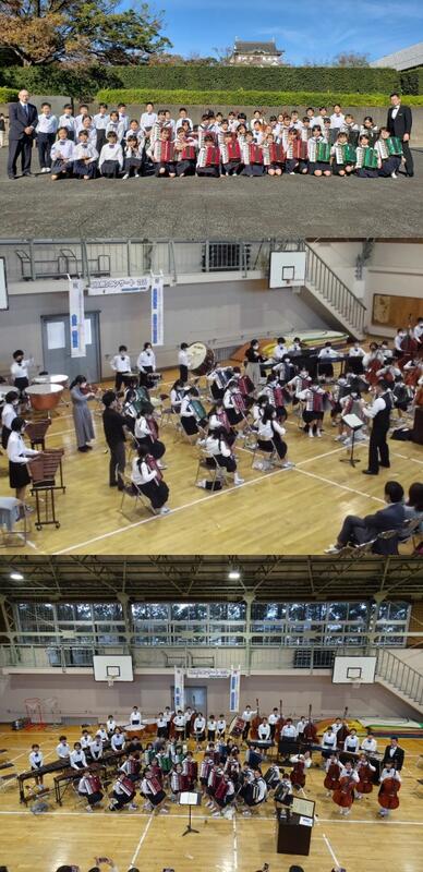 また、合奏部のために駆けつけて下さった「Quartet DONKA」の皆様による素晴らしい演奏をお聴きすることもできました。プロの方々の演奏に目を輝かせ、身を乗り出して聴き入っていた子ども達。そして、コンサートの最後には、合奏部と「Quartet DONKA」の皆様と本校合奏部の演奏曲「CZARDAS」を合同で演奏させていただきました。素晴らしい音のハーモニーが広がり、素敵な時間となりました。