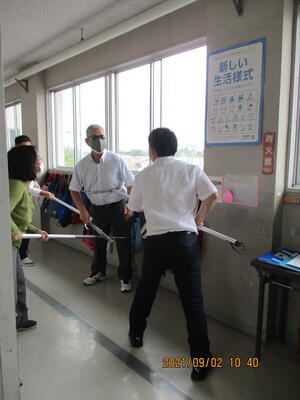 警察署の方にご指導いただきながら、教員間の連絡・対応の仕方について確認すると共に、学級では、教室の施錠やバリケード、そして担任の指導のもとで待機することを確認しました。