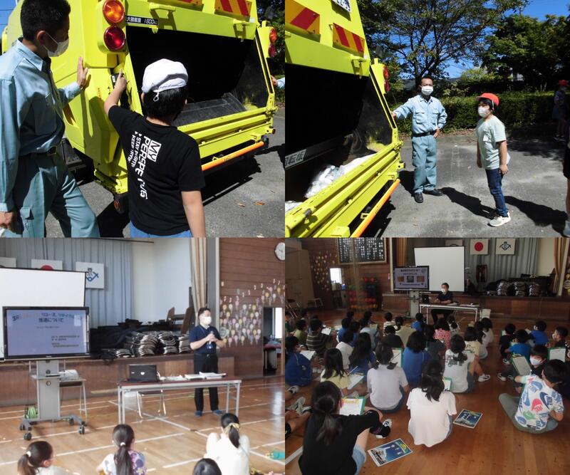 1・2組、3・4組の二つに分かれ、パッカー車にゴミを入れる体験と3Rについて学習をしました。