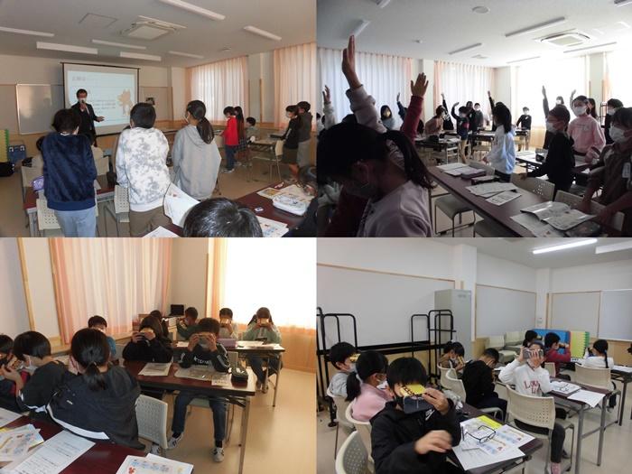 り、クイズを解いたりして理解することができました。また、一人一人が防災VR体験をして、
