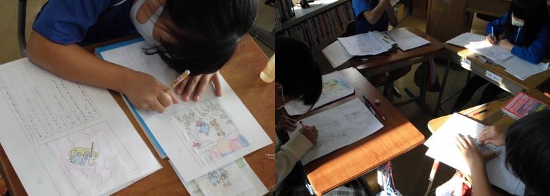 同じ絵をつかっていても、一人ひとり全然違った物語が広がっており、漢字や「 」(かぎかっこ)の使い方に注意しながら、一生懸命取り組んでいるところです。