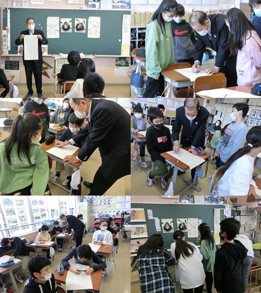 6年生が総合学習の時間に、絵のぼり作りに挑戦しました。1学期にふるさと学習で、須賀川絵のぼり吉野屋さんにお邪魔して、絵のぼりの由来や作業の仕方などについて学びました。そして2学期は、実際に自分たちの手で絵のぼりを作ることになりました。4校時にわたって、各クラスで大野さんにかき方の指導をしていただき、下絵を完成することができました。今度は、目やひげをかき加えたり、色を入れたりしながら、絵のぼりを仕上げていきます。子どもたちそれぞれの魂を込めた絵のぼりがどのように完成していくか、とても楽しみです。