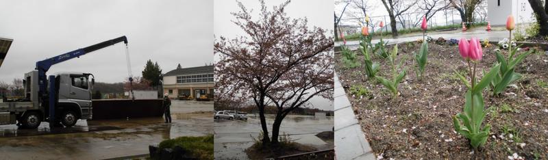 いつもは地面に敷かれていたので大きさはわかりにくかったのですが、写真の中の大人の人と比べるとかなり大きいのがわかりますね。きっと、これが取り除かれた校庭は、とても広く感じるでしょうね。