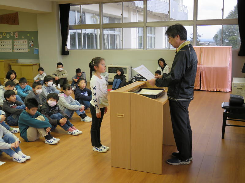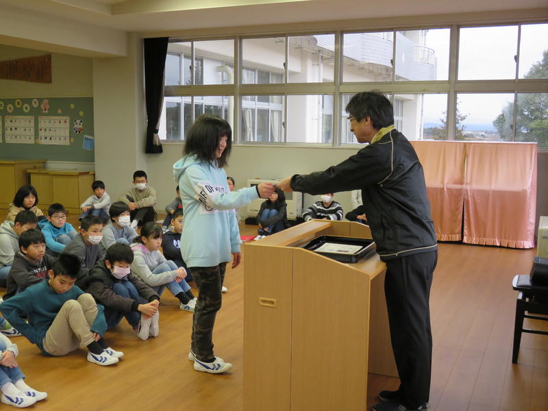 2020年2月17日 18時24分朝の全校集会では、書き初めや俳句、なわとび記録会、暗唱合格者への賞状の伝達を行いました。校長先生からは、残り一ヶ月を健康に過ごし、学年の締めくくりを充実させてほしいとのお話がありました。今週の金曜日に授業参観があります。子どもたちの1年間の成長がぎっしり詰まった学習の様子や発表を見ていただく予定になっておりますので、どうぞお楽しみに。