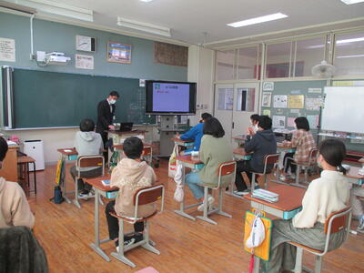 2022年1月27日 17時59分6校時、5・6年生は保健の授業で薬物乱用防止について学習しました。講師を学校薬剤師の市川先生にお願いして、VTRを視聴した後、危険な薬物にはどんなものがあり、そのような薬物に手を出してしまうと、取り返しのつかないことになってしまうことを教えていただきました。もし、周りに誘惑されても、きっぱり断る勇気が必要であることも子どもたちは学びました。