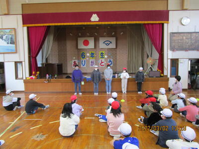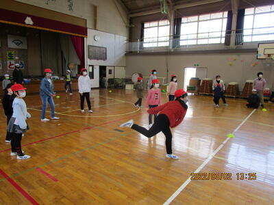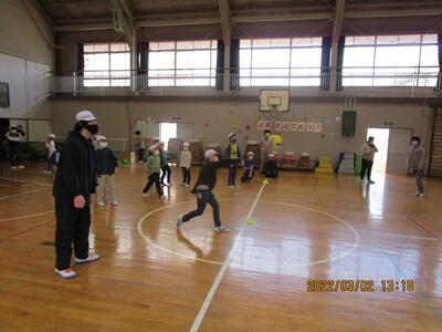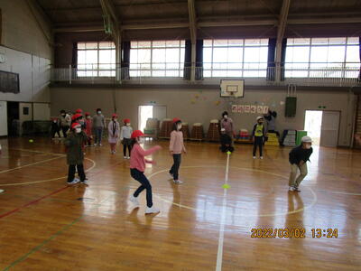 2022年3月2日 16時36分午前中の6年生を送る会に続き、昼休みには、延期、さらに延期となっていた保健・体育委員会企画の「ドッジボール集会」が行われました。全校生で仲良く元気に、楽しい時間を過ごしていました。