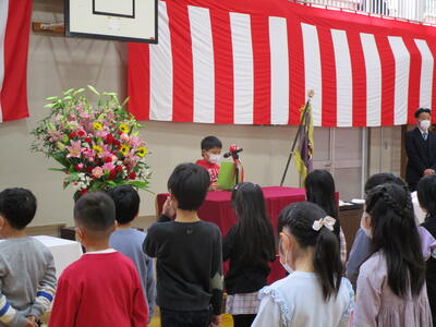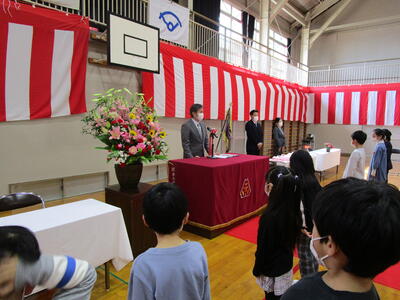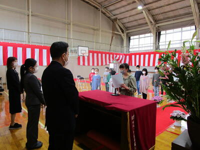 2022年4月6日 16時34分第1学期始業式の前に、4月1日付けで本校に着任した3名の教職員と児童との対面式でもある「着任式」を行いました。着任した教職員一人一人から挨拶をいただいた後、6年生児童によるあいさつと校歌斉唱で着任された先生方を歓迎しました。