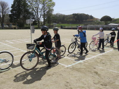 2023年4月13日 15時29分5校時目に、全校生で交通教室を実施しました。西袋交番の佐々木様、市交通教育専門員の相楽様と阿部様、交通安全協会の渡辺様を講師としてお招きし、1~3年生は道路の歩き方、4~6年生は自転車の乗り方について実際に体験しながら学習しました。講師の皆様には、集団下校の様子まで見ていただき、本当にありがとうございました。今日の交通教室を通して、「自分の身は自分で守る」ことの大切さに、改めて気付くことができました。
